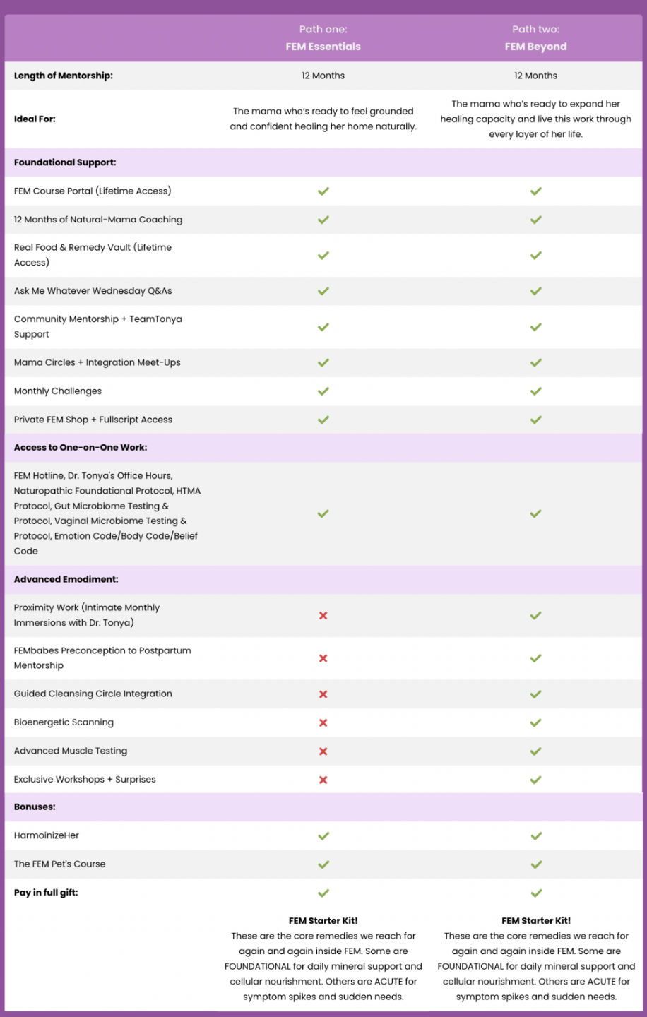 When you join FEM Essentials or FEM Beyond, you receive lifetime access to the Course Portal and Real Food & Remedy Vaults, so you can keep learning and growing long after your first year.